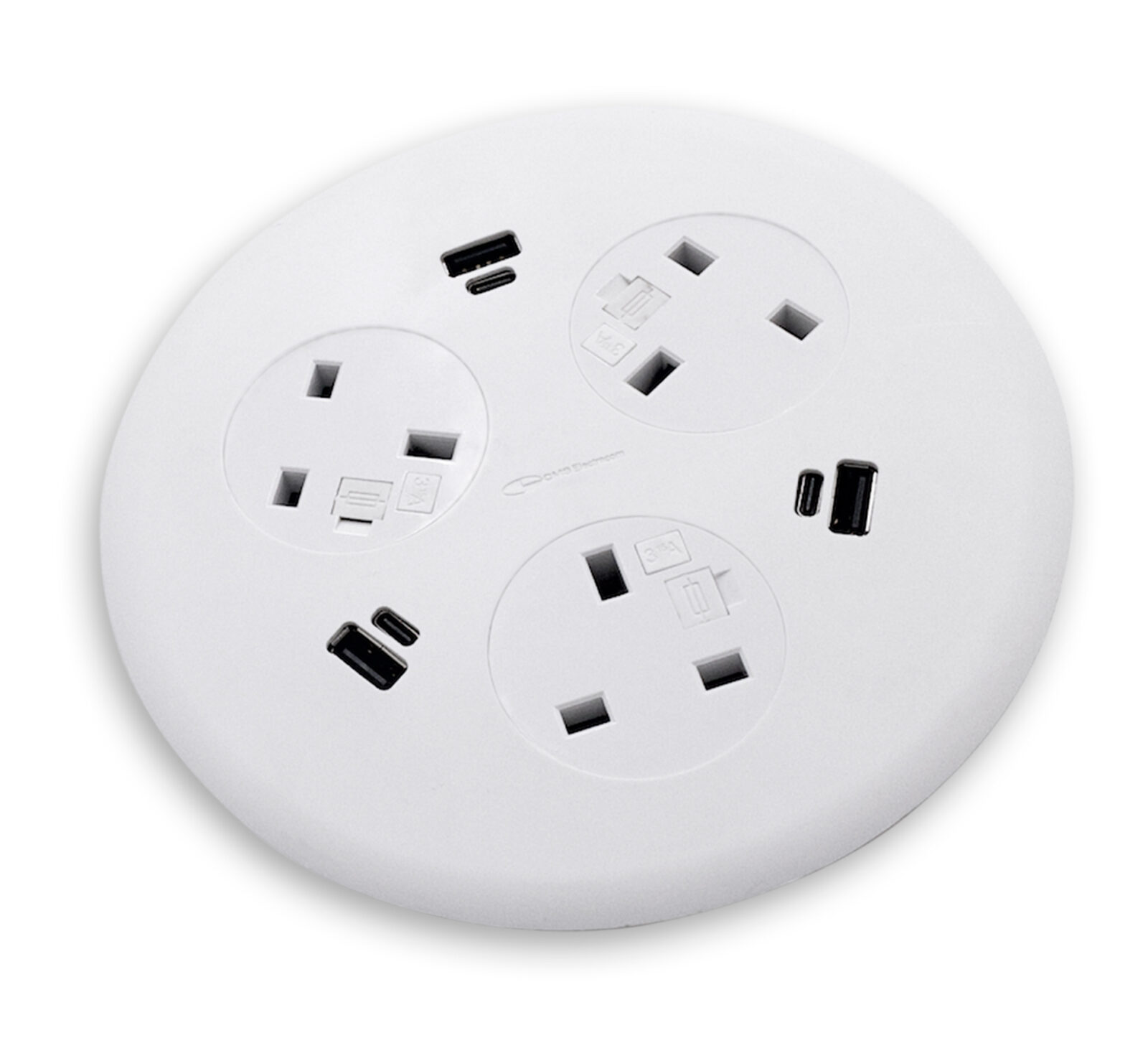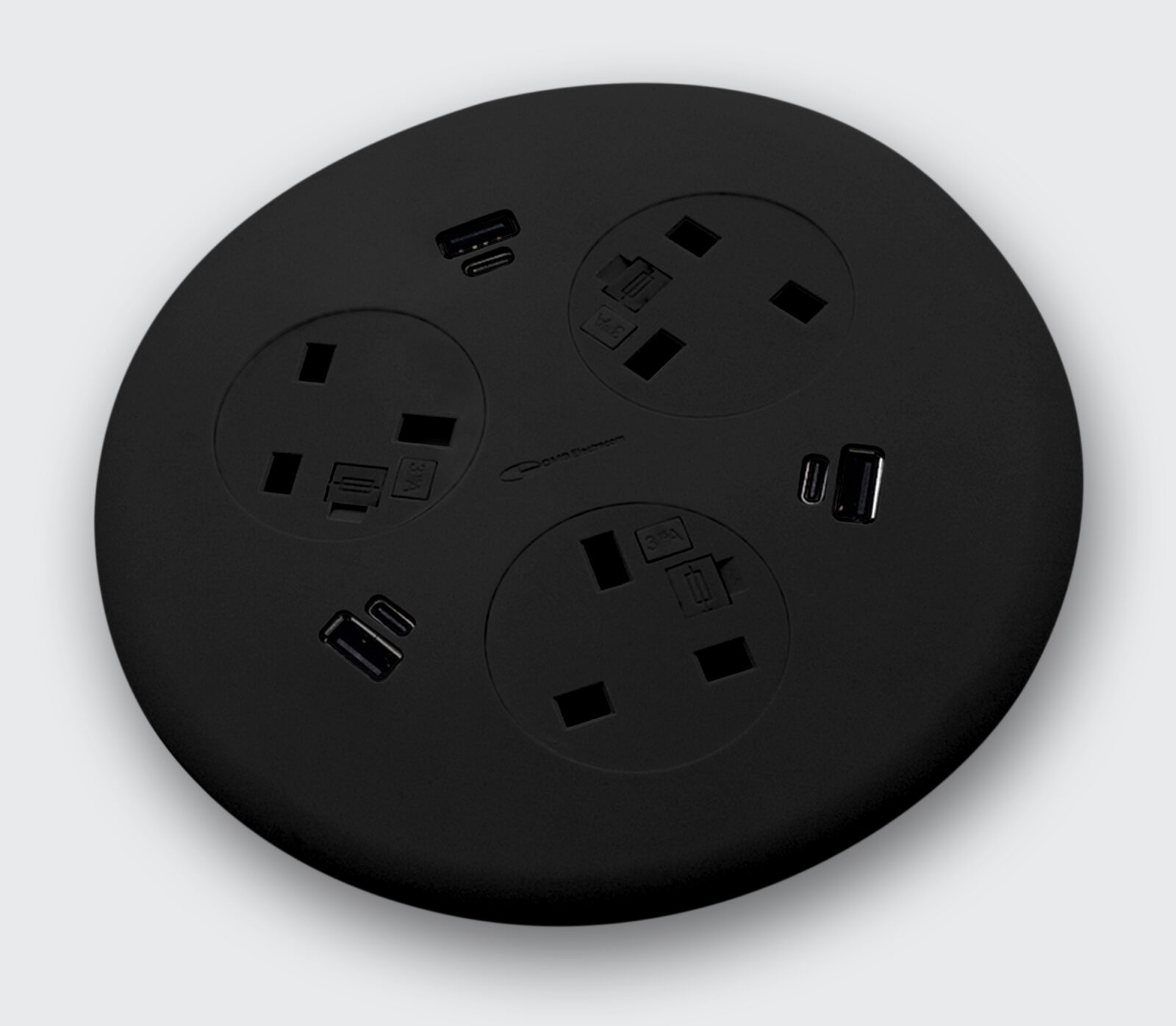 In-Desk Power Modules – Blinky with 3 power – 3.15A and 3 dual USB chargers 30W shared – A + C.